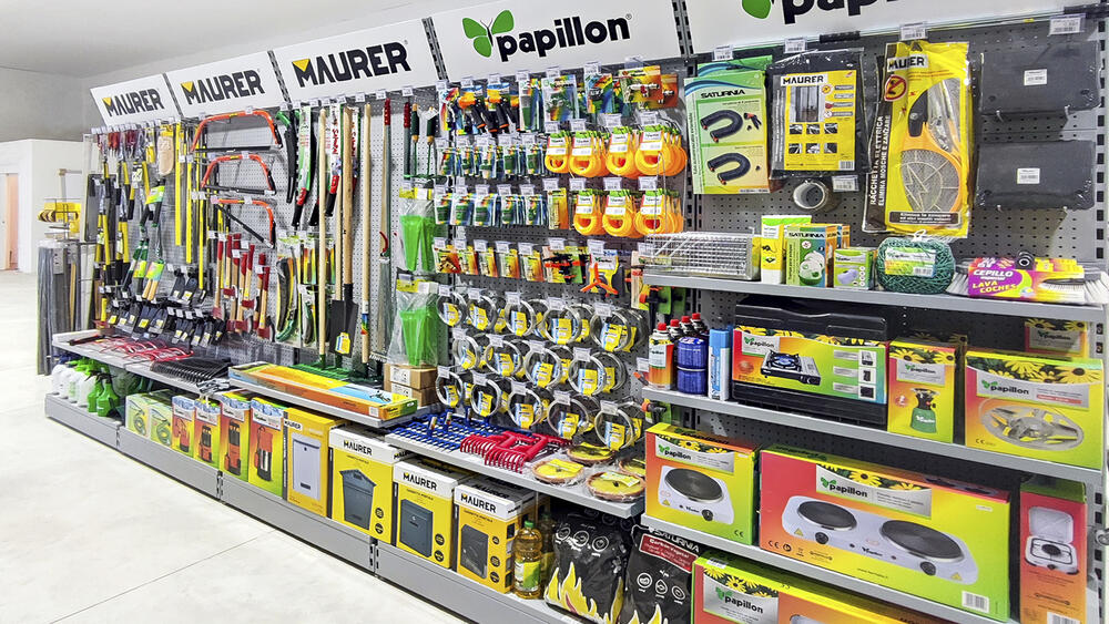 El cliente, asesorado por nuestro equipo de implantaciones, opta por surtido muy variado que abarca desde herramientas y bricolaje, pasando por electricidad básica y fontanería, menaje y jardín.