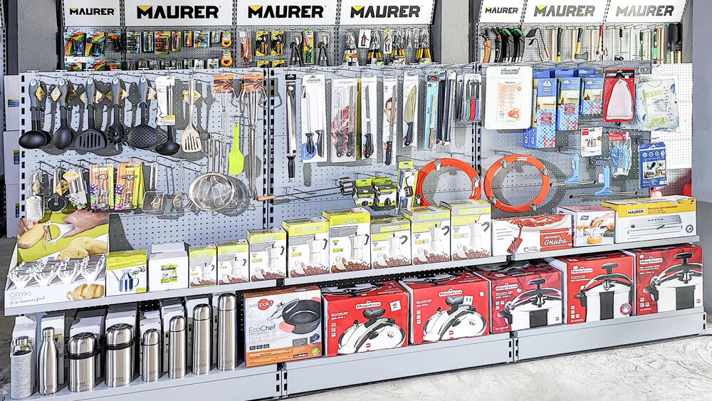 El cliente, asesorado por nuestro equipo de implantaciones, opta por surtido muy variado que abarca desde herramientas y bricolaje, pasando por electricidad básica y fontanería, menaje y jardín.
