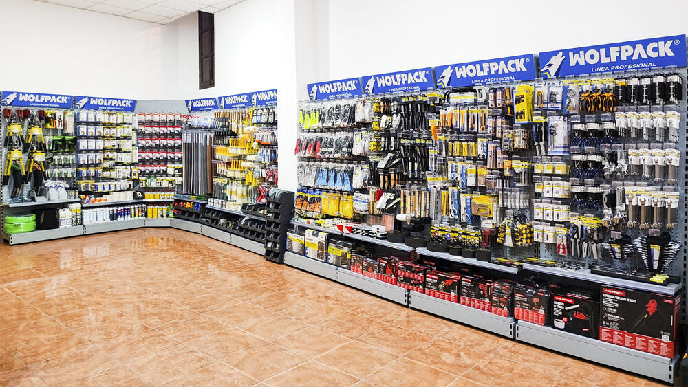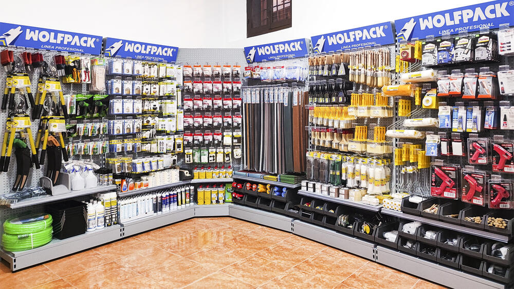El cliente, asesorado por nuestro equipo de implantaciones, opta por surtido muy variado que abarca desde herramientas y bricolaje, pasando por electricidad básica y fontanería, menaje y jardín.